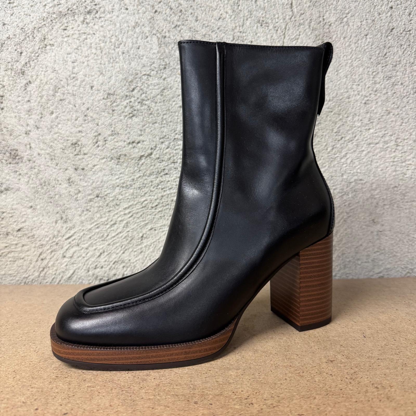 Botí pell amb taló i plataforma. Tancament cremallera