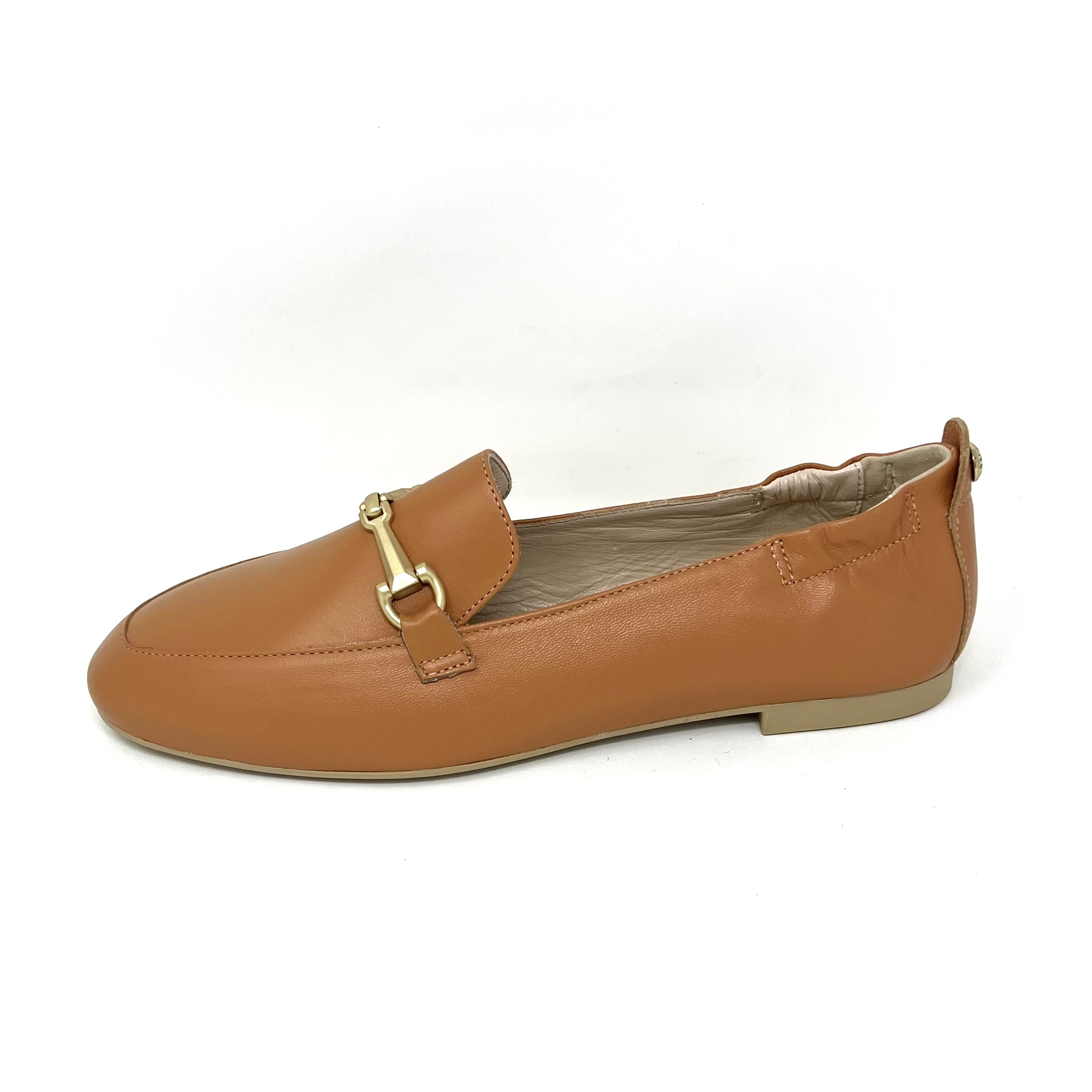 Mocasí sivella daurada amb forro interior de pell i sola exterior de goma