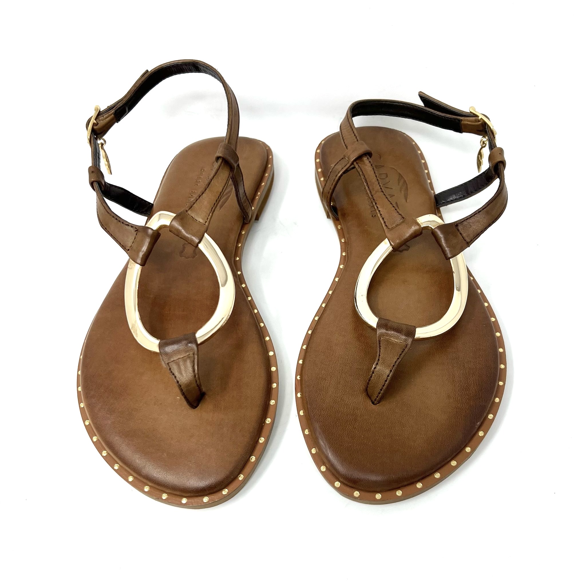 Sandalia entredit amb aro daurat. Tancament sivella
